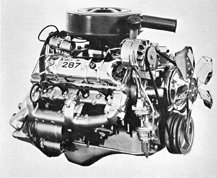 The 250 had a 3.50” bore and a 3.25” stroke. The block was designed with a bore center that allowed a much larger bore though. For the 1957 model year the bore was increased to 4.00” with the same 3.25” stroke forged crank as the 250. This brought displacement up to 327 cubic inches and power up to 250-270 hp, depending on compression. Another difference between the 250 and 327 was that the 250 used solid lifters with adjustable rocker arms whereas the 327 used non-adjustable hydraulic lifters.