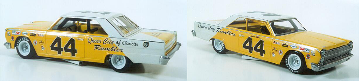 Between 1966 and 1968 Larry Hess drove a 66 Ambassador sponsored by Queen City Rambler (Charlotte, NC) in five NASCAR races. On August 18 he ran the Rambler in the Sandlapper 200 at Carolina Speedway, Columbia, SC. He only completed 170 of 400 laps (½ mile track) before breaking at least one rocker arm. On July 10th he ran the 2.85 mile road race course at Bridgehampton Raceway in New York (state), followed by the Grand National race at Fonda Speedway (also NY state). Only five laps were completed at Bridgehampton, only 1 at Fonda – both due to engine trouble (most likely rockers again). The Ambassador wasn’t raced again until 1967 at the November 5th Greenville 200 at the Greenville-Pickens Speedway in SC. It only completed five laps before engine trouble again. Hess didn’t take the Rambler out again in 67, but tried one last time in May 11, 1968 at the Rebel 500 in Darlington SC. All I could find is that 0 laps were completed – he may have entered and not qualified, had engine trouble during qualifying, or during the first lap.