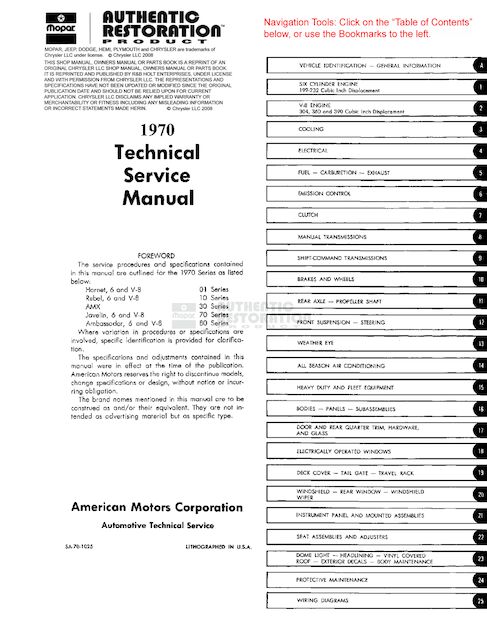 This is the 1970 AMC Technical Service Manual, complete.