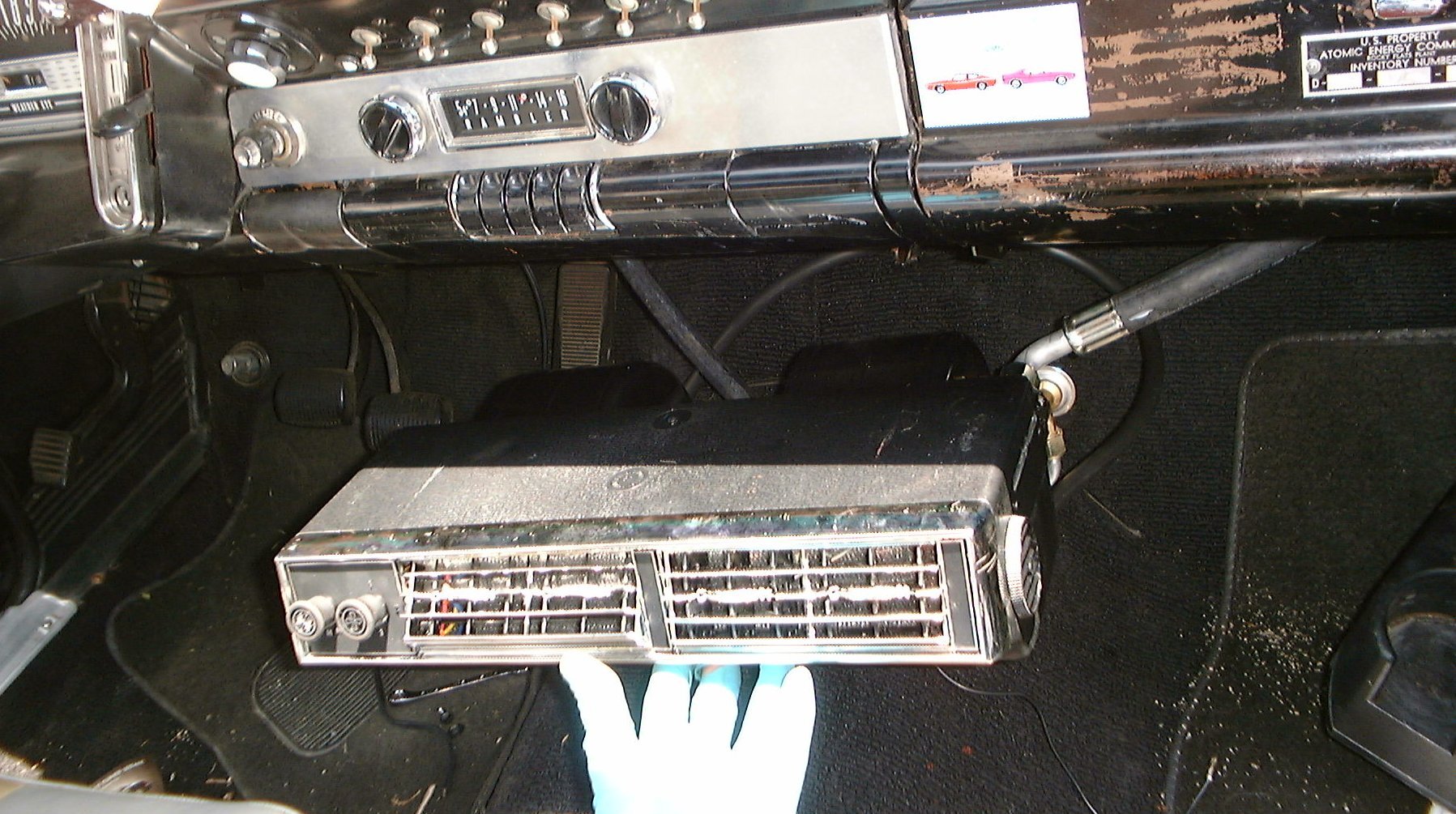 side on all the new gear is #10 hose and the old stuff is #8. Even so, it would probably have worked adequately well if, after I got it all together, tight and leak-free, I hadn’t discovered that the 40-year-old expansion valve was bad. I abandoned this foolishness and bought a new, matching evaporator unit; an under-dash VintageAir that was designed to look old-timey (eg.1960’s).