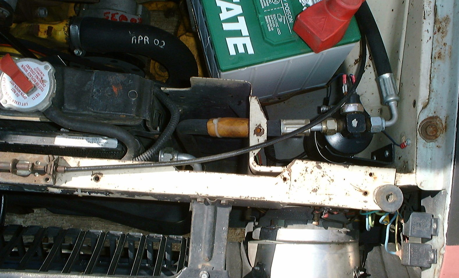 In the abstract, the installation consists of mounting the major components, evaporator (inside the car), condenser (in front of the radiator), and compressor on the motor. The rest is custom work connecting all the parts. The hoses are a big deal.
