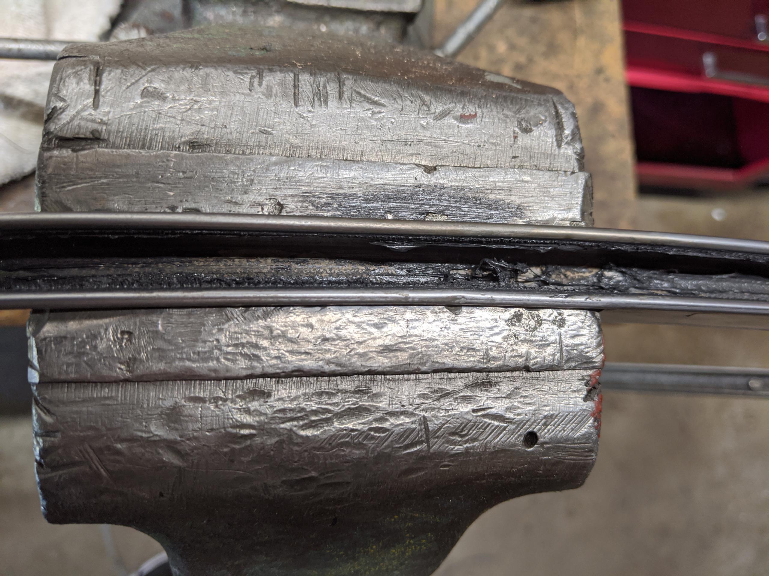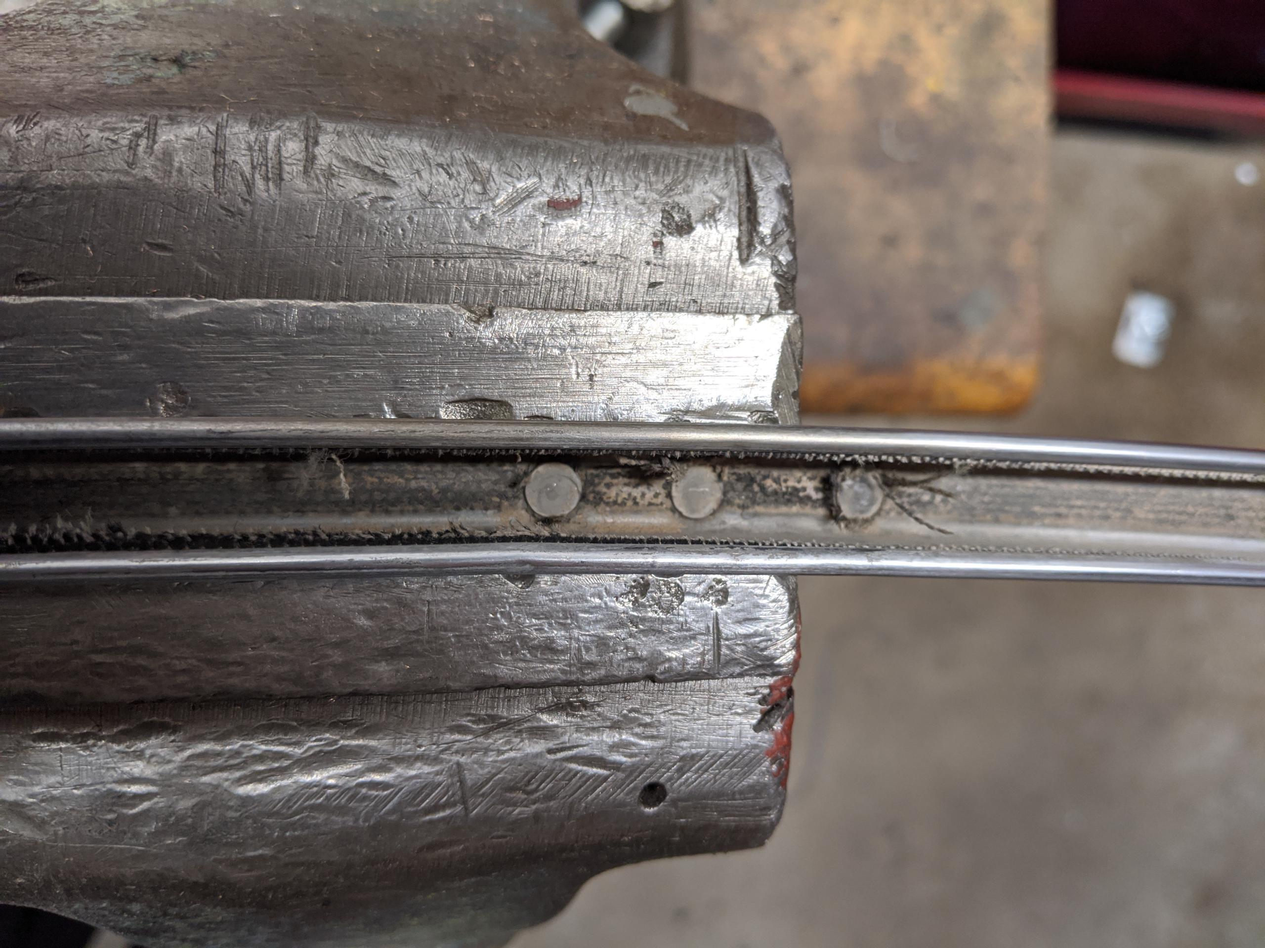 This is much easier, and nearly as good. The one flaw is that the resulting channel for the glass is 1/32″ or so too wide, so the glass isn’t as tight as the “correct” part, but it is not worn-loose and not sloppy.